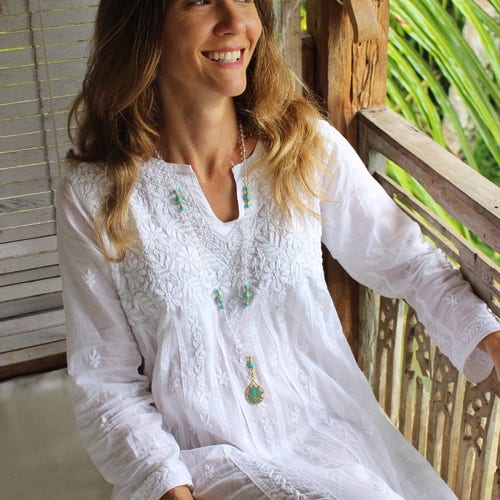 White Ibiza Tunic Dress In Muslin Cotton Simple Wedding Etsy Uk